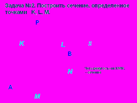 - Теперь давайте вспомним алгоритм построения сечения тетраэдра на примере двух задач (презентация 1, слайды 11-12). (построение комментируется пошагово учителем).