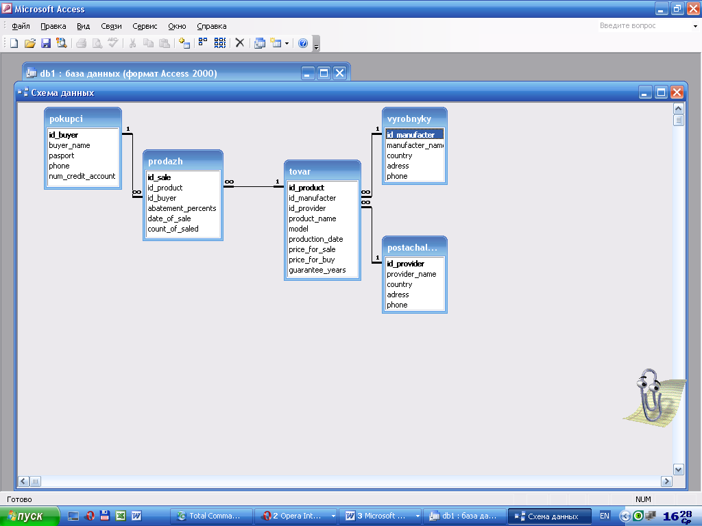 Інформаційна модель та типи зв’язків представлені на рис.1