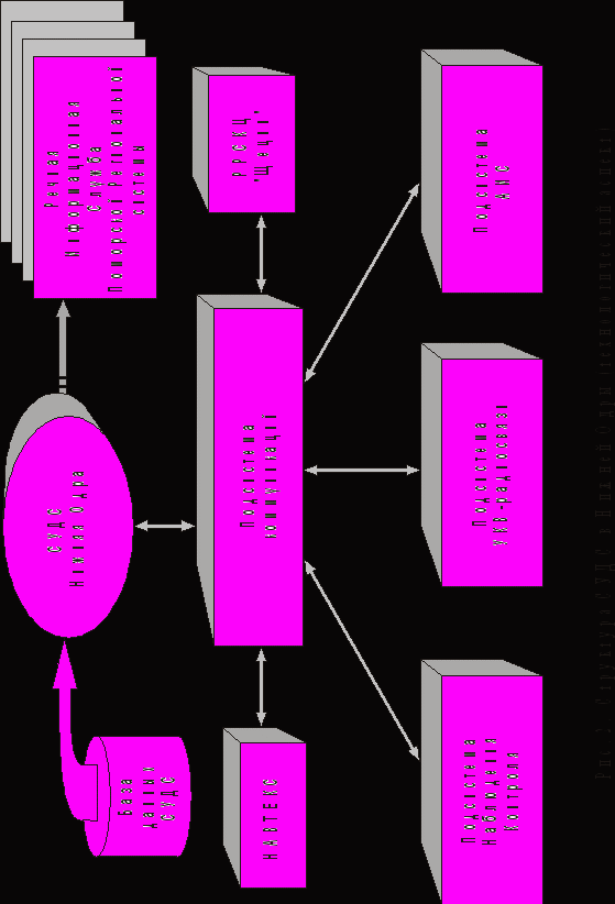 пучка стандартных каналов связи, используемых для обмена информацией всех видов между остальными подсистемами. Циркуляция потоков информации в ней для обсуждаемой системы представлена на рис.3.