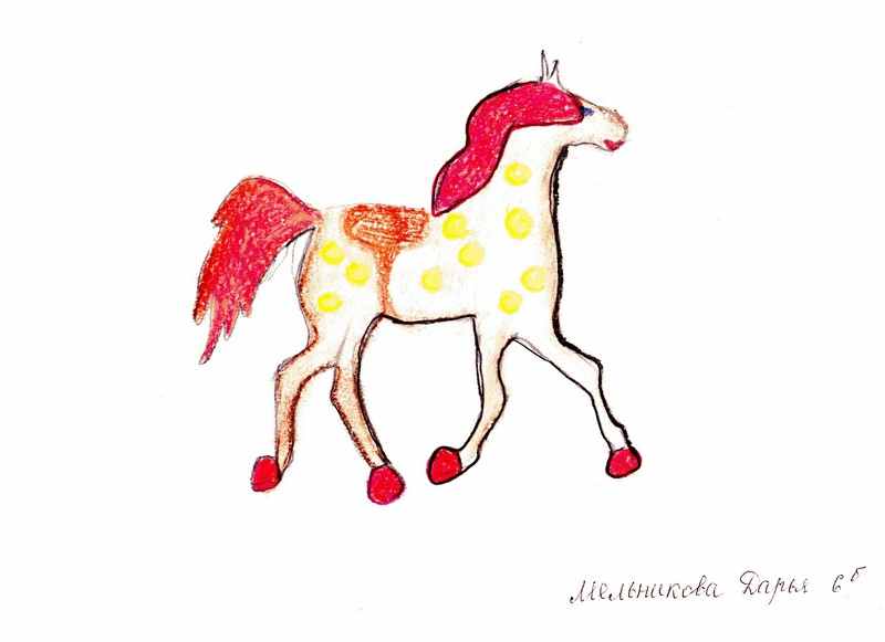 5-я группа. “Я зажмурился и открыл глаза. Ещё раз зажмурился, ещё раз открыл. По скоблёному кухонному столу, будто по огромной земле, с пашнями, лугами и дорогами, на розовых копытцах скакал белый конь с розовой гривой”.