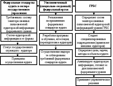 Уполномоченный (специально созданный) федеральный орган вырабатывает рекомендации по непосредственной организации аудита и реализации положений, заложенных в стандартах, формирует программы и осуществляет обучение, аттестацию, переподготовку аудиторов, а также внешний надзор за соблюдением требований федеральных стандартов.