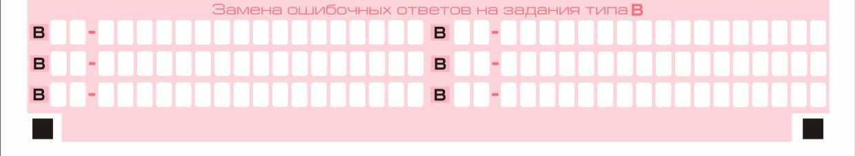 В нижней части бланка ответов № 1 предусмотрены поля для записи новых вариантов ответов на задания типа В взамен ошибочно записанных (рис. 10). Максимальное количество таких исправлений – 6 (шесть).