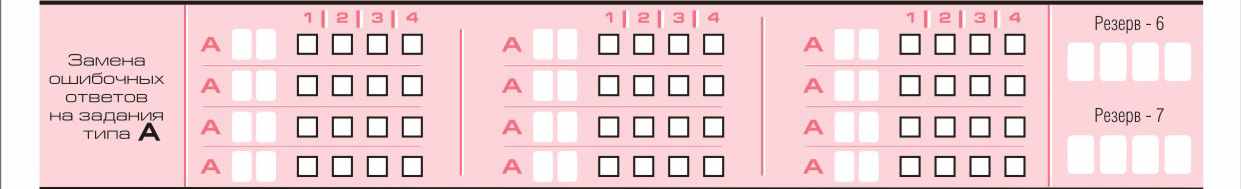 Заменить можно не более 12 (двенадцати) ошибочных ответов по всем заданиям типа А. Для этого в соответствующее поле области замены ошибочных ответов на задания типа А следует внести номер ошибочно заполненного задания, а в строку клеточек внести метку верного ответа. В случае если в поля замены ошибочного ответа внесен несколько раз номер одного и того же задания, то будет учитываться последнее исправление (отсчет сверху вниз и слева направо).