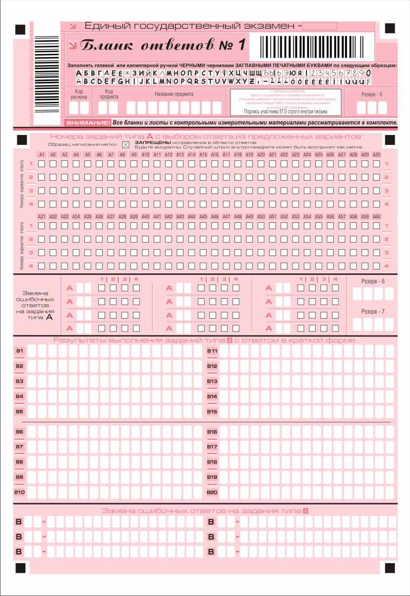 В области ответов на задания типа А нельзя допускать случайных пометок, клякс, полос размазанных чернил и т.д., так как при автоматизированной обработке это может быть распознано как ответы на задания КИМ. Если не удалось избежать случайных пометок, их следует заменить в области «Замена ошибочных ответов на задания типа А» на те ответы, которые участник ЕГЭ считает правильными.