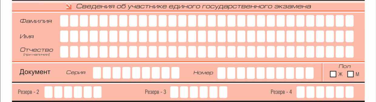 Поля средней части бланка регистрации заполняются участником ЕГЭ самостоятельно (см. табл. 3), кроме полей для служебного использования («Резерв-2», «Резерв-3» и «Резерв-4»). Данные поля участником ЕГЭ не заполняются.