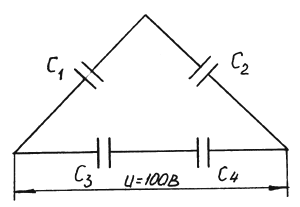 По первому блоку 7 карточек, по второму блоку – 7 карточек, по третьему блоку – 7 карточек, по четвертому блоку – 6 карточек, и одна карточка может быть использована по любому блоку. Перед началом урока карточки раскладываются на столе, обратной стороной. Учащиеся берут по одной карточке. Затем находят свою команду, объединяются по блокам. Для этого карточки одного блока я пометила одинаковой рамкой. Сдваивают столы и начинают работу над полученным заданием. Время на подготовку выделить 15-20 минут. Лучше сориентироваться в процессе подготовки. Если у группы учащихся, обсуждающих данный блок, часть карточек осталась неразобранной, они берут дополнительные на столе. Когда группы готовы: Начинает отвечать первая группа: (желательно, чтобы отвечал средний или слабый учащийся). На экране через кодоскоп дать проекцию данного блока. Все прослушивают ответ и вносят свои дополнения и поправки (сначала участники команды, затем остальные). Оценки можно обсуждать коллективно. По усмотрению преподавателя, всей команде поставить одинаковую оценку, или наблюдая за работой команды, подойти дифференцированно. Данные карточки можно использовать и при опросе по другим темам, в качестве дополнительного вопроса, который учащийся выберет сам со стола учителя. При этом у учащихся исчезнет комплекс, что учитель его заваливает. Можно данные карточки использовать при закреплении материала в процессе изучения по блокам. Для этого использовать кодоскоп. Заготовить карточки опроса также не пленке. В карточках не следует помещать довольно сложные вопросы. Это потребует больше времени на подготовку. А слабые группы просто не смогут с ними справиться. Материал требует знания и понимания предмета на среднем уровне. После работы по карточкам группам задаются практические вопросы с постановкой эксперимента: 1. Между пластинами раздвижного конденсатора, соединенного с конденсаторами электрофорной машины, помещается металлический шарик, подвешенный на нити. Шарик приходит в колебательное движение. Учащиеся должны объяснить почему. 2. Зарядить пластины конденсатора. Одну из пластин соединить с электроскопом. Между пластинами внести лист металла. Объяснить наблюдаемое явление с решением предложенных задач. 3. С1 = С2 = С3 = С4 = 5 мкФ Найти общую электроемкость и заряд батареи  4. С1 = С2 = С3 = 10 мкФ Найти общую электроемкость  Задания решаются на быстроту. Какая группа даст быстрее правильный и более полный ответ. В конце урока капитаны групп дают оценку работы участников в группы. Каждая группа делает самооценку своей работе. Остальные анализируют правильность самооценки. В группах техникума занятие двух часовое. Второй час после соответственной мотивации перехожу к объяснению темы: Понятие тока. Вывод закона Ома для участка цепи. Урок заканчиваю решением практической задачи: Расстояние от Алдана до Чульмана 250 км. Сопротивление 1 км линии 2 Ом. Как определить, где произошел обрыв провода? Какие дополнительно приборы следует взять? Ребята после размышлений предлагают: амперметр, вольтметр. С помощью преподавателя стоит подсказать, что генератор нужно отключить и взять маломощный источник тока. Задается значение U и I.