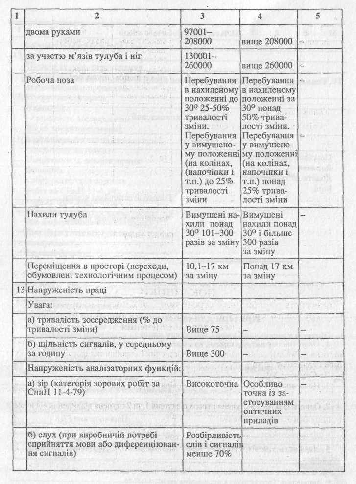 (Витяг з класифікації умов і характеру праці за ступенями шкідливості і небезпечності, важкості і напруженості**)