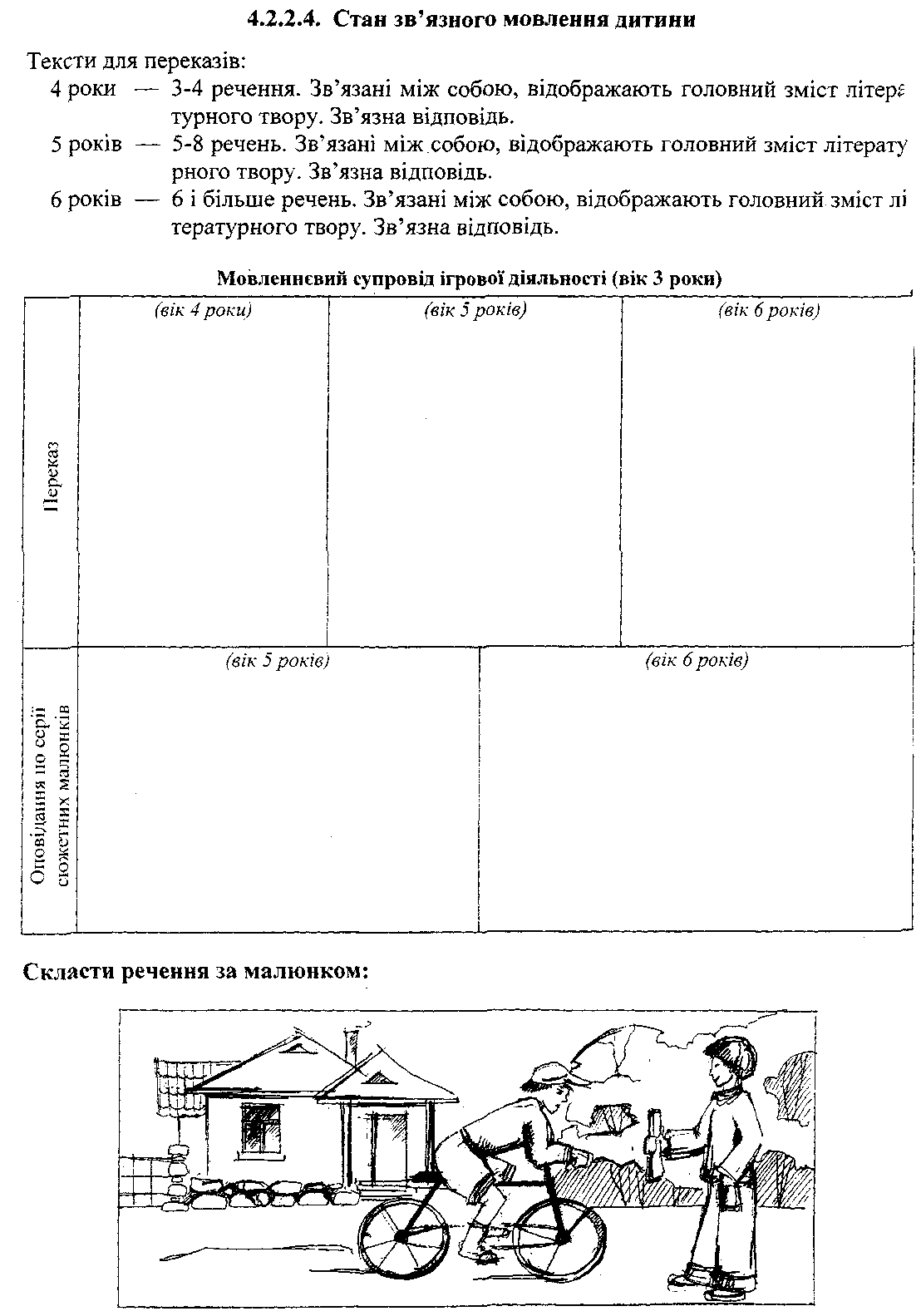| 4.1.1. Вимова звуків на початку, всередині, у кінці слова: відображена, самостійна | Вік дитини 3 роки Вік д 4 роки итини 5 років 6 років | |||