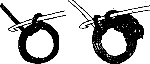 | 1 | Скласти нитку в коло, зробити кілька витків, обв'язати стовпчиками без накиду | |