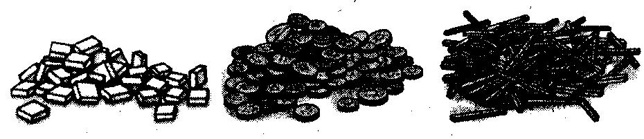1) Кружальця. 2) Соломка. 3) Шматочки.