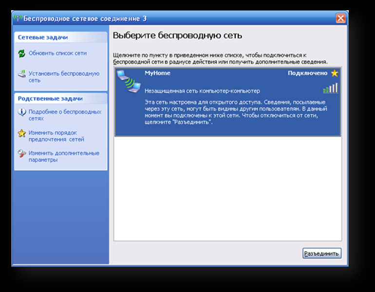 Средства Windows XP позволяют создать беспроводную сеть с помощью специального мастера, доступного в разделе «Доступные сети».