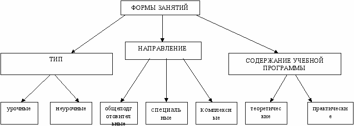 Формы занятий по спортивной борьбе определяются в зависимости от контингента занимающихся, задач и условий подготовки и различаются по типу организации (урочные и неурочные), направленности (общеподготовоительные, специализированные, комплексные), содержанию учебного материала (теоретическое, практическое). Основные формы внеурочных практических занятий: дифференцированное обучение и воспитание, соревнования, экскурсии, походы, видео просмотры чемпионатов разных уровней, анализы соревнований.