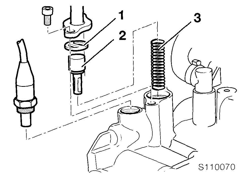 В клапанных коромыслах применяются толкатели со сферическими наконечниками, поэтому для их фиксации на оба клапанных коромысла устанавливается резиновая лента (см. S110110).