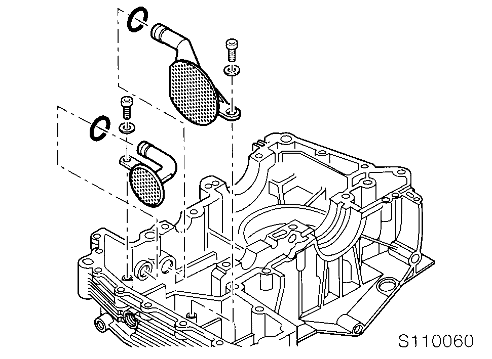 ВНИМАНИЕ Плунжеры натяжителей цепей не менять (они разные см. слева-справа на рис. RS110060). При установке натяжителей применять новые уплотнения.