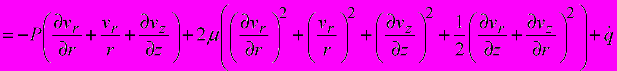 ,где vr, vz - компоненты вектора скорости течения, ρ - плотность, P - давление, ε – внутренняя энергия единицы массы газа , μ - вязкость,
