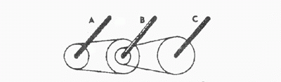 8. Яке з коліс, А або В, обертатиметься в тому ж напрямі, що і колесо X?_