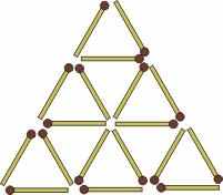 У фігурі, представленій на малюнку, потрібно так перекласти 6 сірників з одного місця на інше, щоб утворилася фігура, складена з 6 однакових чотирикутників.