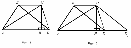 адача 3. АВСD – трапеция с основаниями АD и BС. Диагонали АС = а, ВD = b. Высота СН = h. Найдите площадь трапеции (рис. 1).