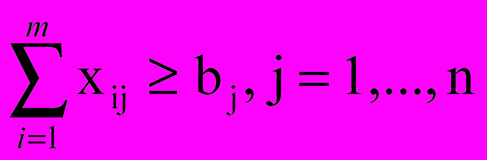 cij ≥ 0 - совокупные производственные и транспортные затраты, Fij ≥ 0 -некоторые постоянные затраты (Пусть Fij не зависит от объема перевозок xij > 0, но при xij=0 Fij также равна нулю).