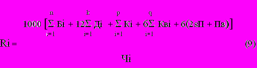 Rоi – суммарный профессиональный риск в расчете на 1000 человек в данной организации, рассчитанный по показателям организации, тысяч рублей в год