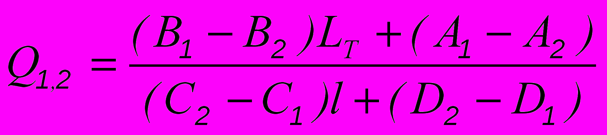 При сравнении бульдозеров 1 и 2 получают функцию границы областей их эффективного применения. При этом приравнивают себестоимости выполнения работ