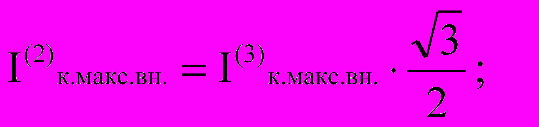 Формули для визначення розрахункових струмів у реле максимального струмового захисту при двофазних к.з.
