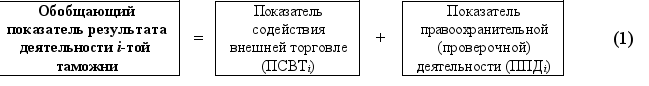 Общая формула расчета обобщающего показателя результата деятельности таможни с учетом выделенных двух основных направлений ее деятельности имеет следующий вид: