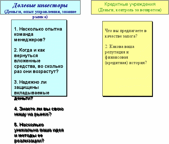 И кредитные учреждения, и инвесторы частного капитала интересуются различными сторонами деятельности предприятия.
