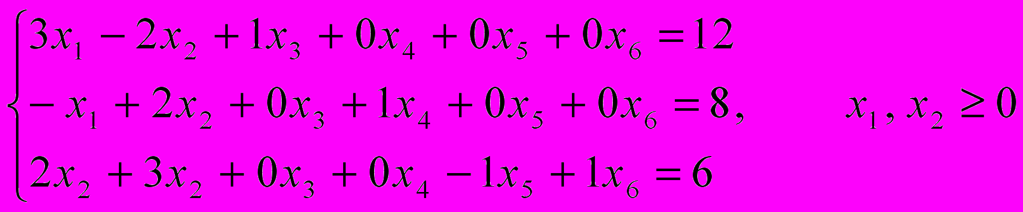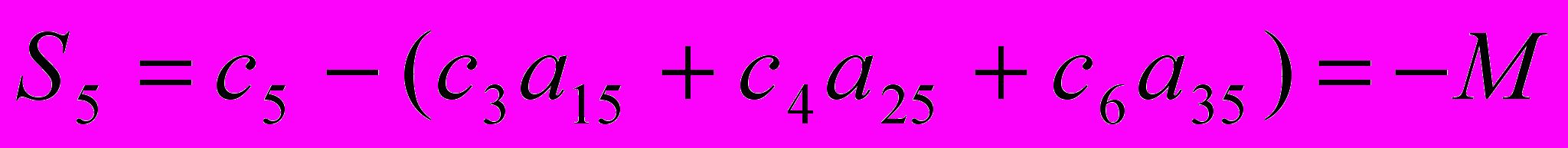 , то введем искусственную переменную х6 и перейдём к задаче максимизации (поменяем знак целевой функции), при этом в целевую ф-цию войдёт искусственная переменная х6 с отрицательным знаком и коэффициентом М (М >>1).