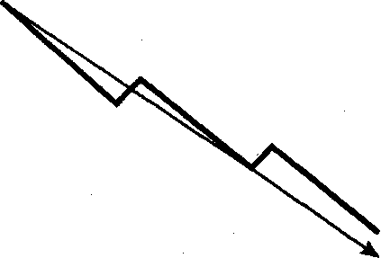 Представим себе ярко выраженный медвежий тренд. Его первая фаза, фаза зарождения, представляет собой спад цен под действием общеизвестных "плохих новостей", например, известия о ликвидации нескольких крупных компаний. Во второй фазе принимают участие биржевые спекулянты, причем цены быстро падают, хотя новости и улучшаются. В третьей, заключительной, фазе в действие вступает широкая публика, подстегнутая прессой, и начинается панический спад цены. Именно в этой, последней, фазе информированные "киты" начинают покупать.
