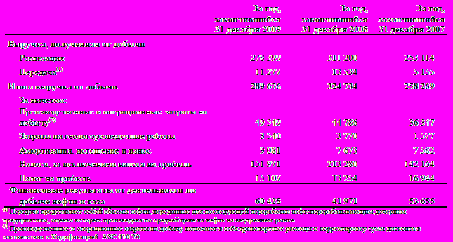 инансовые результаты деятельности по добыче нефтиДалее приведены финансовые результаты деятельности Группы по добыче нефти. Запасы природного газа не являются существенными в составе общих запасов Группы.