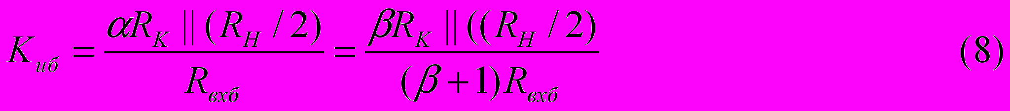 является сопротивлением нагрузки. Формула (7) справедлива при Rэ > Rвхб. Для каскада ОБ, образованного транзистором Т2, коэффициент усиления по напряжению