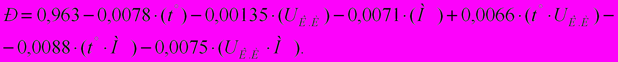 , (11)где a1, a2, … , a7 - коэффициенты регрессионной модели, β1 – параметр затяжки щеткодержателя (в относительных единицах). Значения для коэффициентов регрессии получены при обработке результатов ресурсных испытаний генератора 94.3701 на стенде: