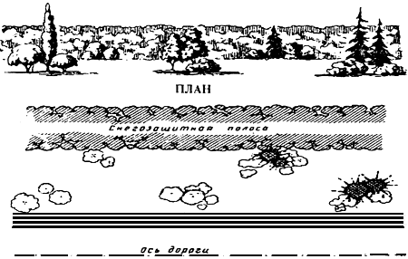 2.3. Снегозащитное озеленение создают для защиты дорожного полотна от снежных заносов. Этот вид озеленения применяют в виде одной или нескольких полос, а при небольших объемах снегоприноса - в виде живых изгородей из ели или кустарников.