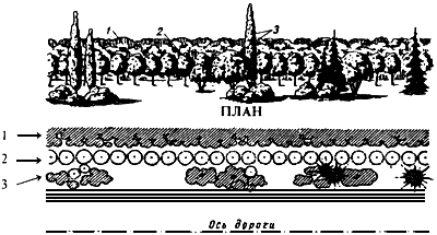 Рис.3.8. Ландшафтно-групповой способ декоративного озеленения автомобильных дорог.