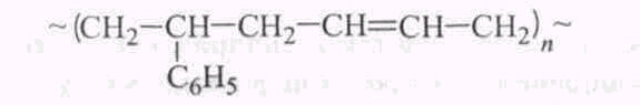 - Напишите схему строения бутадиен-стирольного каучука, считая для простоты, что он представляет собой регулярный полимер, в котором на одно стирольное звено приходится три бутадиеновых, и что бутадиен реагирует только в положения 1,4.