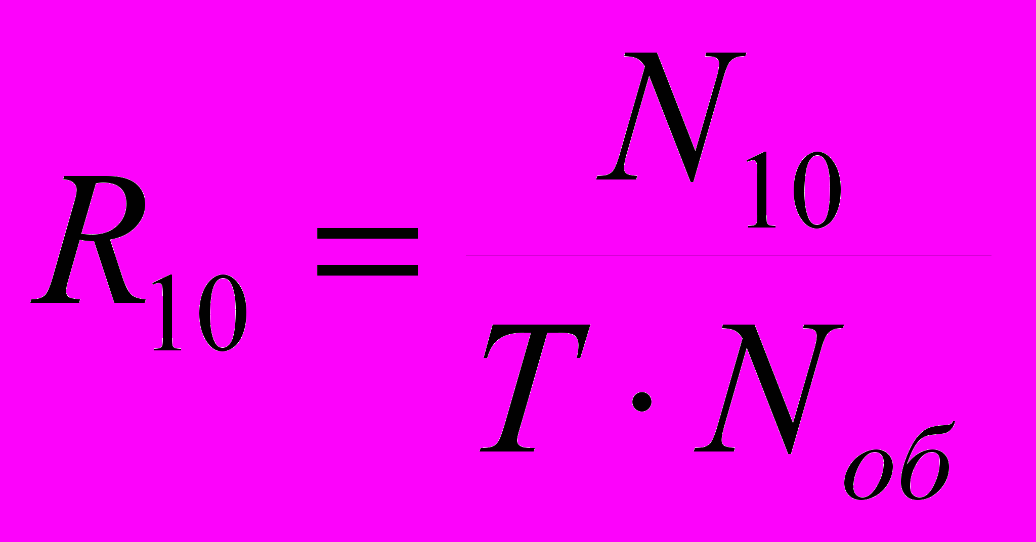 , (4.3.1)где N10 — число пожаров, повлекших за собой гибель 10 и более человек в течение периода наблюдения Т, лет, Nоб — число наблюдаемых объектов.