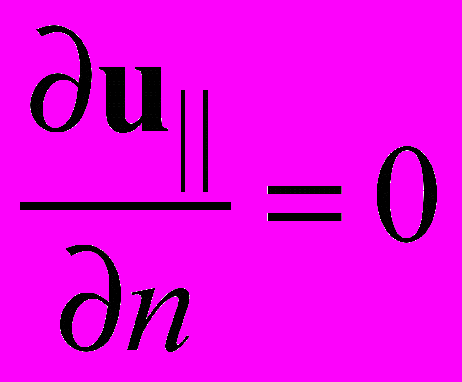 Нормальную и тангенциальную компоненты скорости на стенках полагаем равными нулю, что моделирует соответственно непротекание и прилипание.