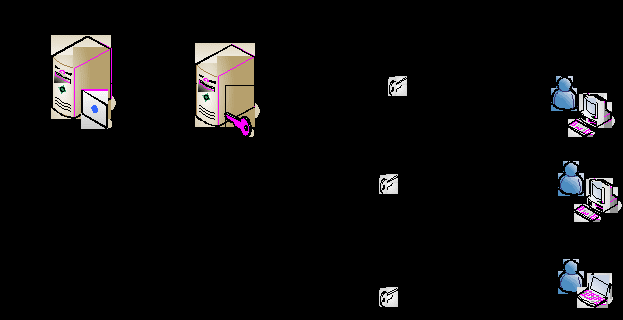 - Пользователь действует на удаленном компьютере при помощи устройства eToken, идентифицирующего его личность. Используя win-клиент или web-сайт(в рамках которых имеется возможность считывать информацию с токена), пользователь может установить сеанс связи, включающий подключение пользователя к системе и автоматическую настройку SSL туннеля при помощи сертификатов клиента (хранится на eToken) и сервера