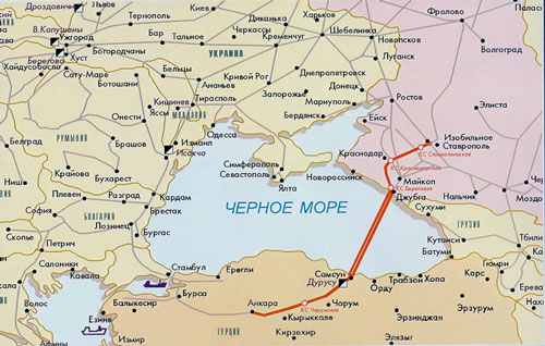 - морська частина порту Архипо-Осипівка до терміналу «Дурусу», довжиною 396 км.