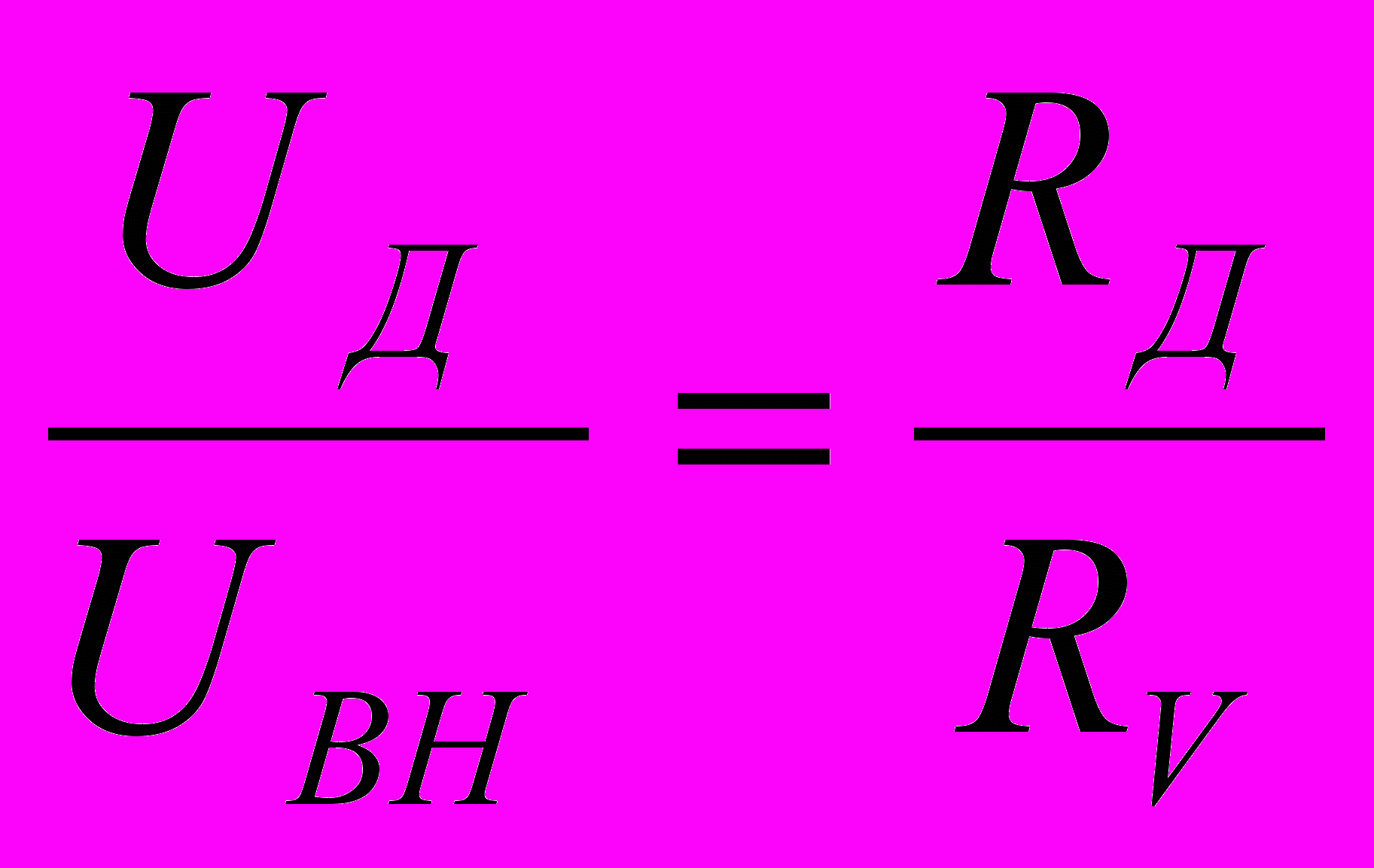 Для измерения величины напряжения на любом участке электрической цепи параллельно к нему включают вольтметр V, считая, что RД отсутствует в цепи