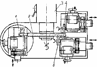 Подлежащий правке круг 2 в сборе с фланцами помещают на шпиндель бабки 3. Тремя суппортами, несущими шлифовальные головки с правящими кругами 1,4 и5 из карбида кремния, круг правится по периферии и двумя торцами. Бабка 3 имеет поворотные салазки для правки конических поверхностей. Для установки фланцев разных конструкций служит набор переходных втулок. Головки представляют собой автономные узлы с индивидуальными электроприводами.