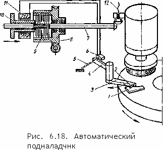раектория движения щупа 2 по копиру 1 передается через рычажную систему 3 н 4 к державке 5 с правящим инструментом 6.