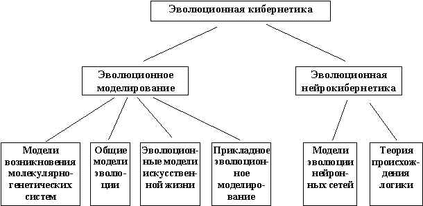 Теперь, рассмотрев основные термины моделирования и эволюции, рассмотрим понятие эволюционное моделирование. Эволюционное моделирование - направление в математическом моделировании, объединяющее компьютерные методы моделирования эволюции, а также близкородственные по источнику заимствования идей другие направления в эвристическом программировании. Включает в себя разделы: генетические алгоритмы, эволюционные стратегии, эволюционное программирование, искусственные нейронные сети, нечеткую логику. Эволюционное моделирование является важной частью эволюционной биокибернетики. Рис.1 иллюстрирует области исследований, которые могут быть отнесены к эволюционной биокибернетики.