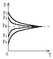 Виды равновесия рассмотрим с помощью следующей схемы (на графиках изображены различные варианты изменения цены с течением времени).