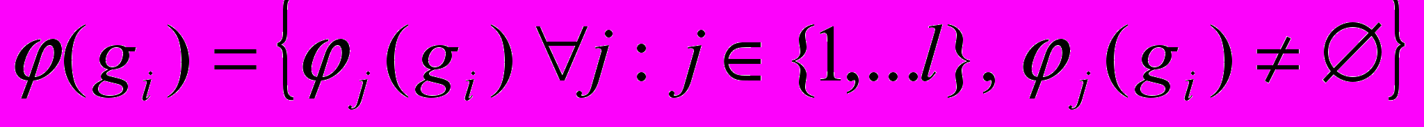 - множество наборов заданных значений всех фасетных признаков для объекта gi .Фасетная формула FF(gi) объекта gi представляет собой множество совокупностей следующего вида: