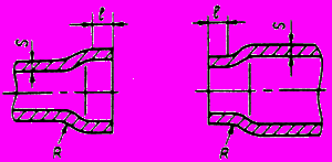 (рис. 6) для отбортованных и переходных элементов сосудов, за исключением штуцеров, компенсаторов и выпуклых днищ, должна быть не менее указанной в табл. 2. Радиус отбортовки