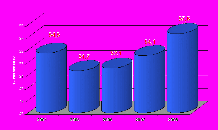 В 2008 году в организациях транспорта и связи на рабочих местах погибло 9 человек, то есть на 1 человека больше чем в 2007 году (в 2007 году погибли 8 человек). Уровень травматизма со смертельным исходом в организациях транспорта и связи в 2008 году составил 0,158 человек на 1000 работающих (2007 г. - 0,139 человек).