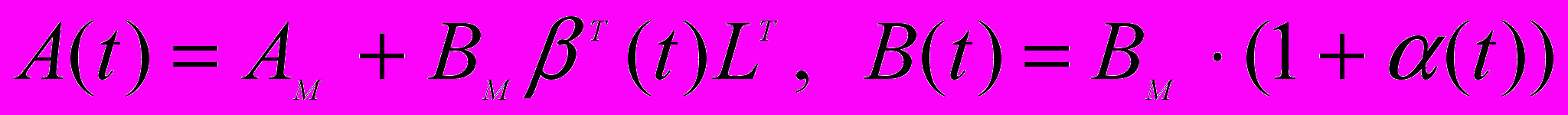 ; (3) – вектор неизвестных параметров; известное множество возможных значений вектора или множество, задающее класс априорной неопределенности параметров объекта управления; L – квазипостоянная матрица заданного размера; e(t) Rn – ошибка рассогласования состояний объекта управления и эталонной модели, которая может присутствовать в системе как явно или неявно, так и явно-неявно; r(t) R – задающее воздействие; относительная степень объекта (n – m) 1. Объект управления (1) функционирует в условиях априорной неопределенности, заданной классом .