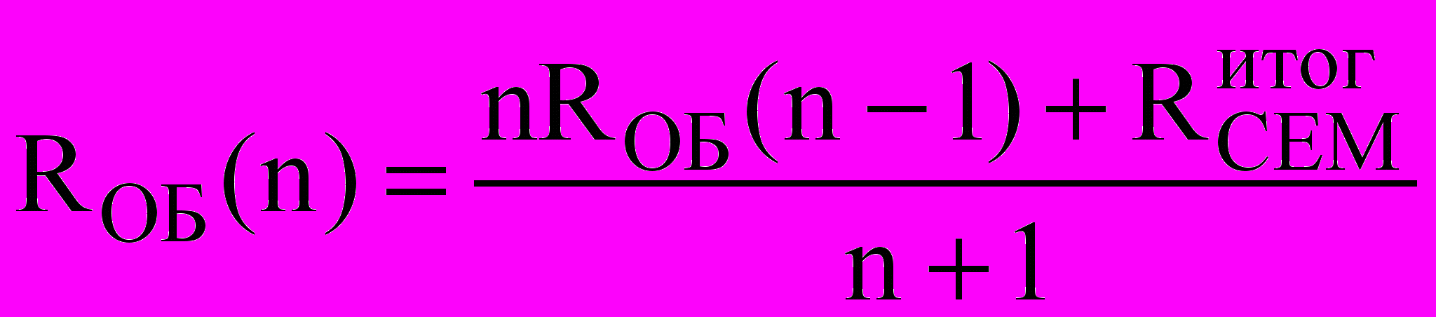 - Обобщённый рейтинг студента RОБ, учитывающий входной рейтинг и успехи студента за всё время с начала его обучения в университете до момента его аттестации, вычисляется в деканате после окончания учебного семестра. Исходными данными для вычисления обобщённого рейтинга после n-го семестра RОБ(n) являются итоговый комплексный рейтинг этого семестра RСЕМитог и обобщённый рейтинг после (n-1)-го семестра RОБ(n-1). Вычисление проводится по формуле: